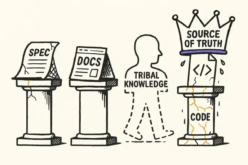 That last answer has become so normal that nobody questions it. The code is the source of truth. Everyone says it. It sits alongside "use version control" and "don't deploy on Fridays" in the unwritten canon of software development.