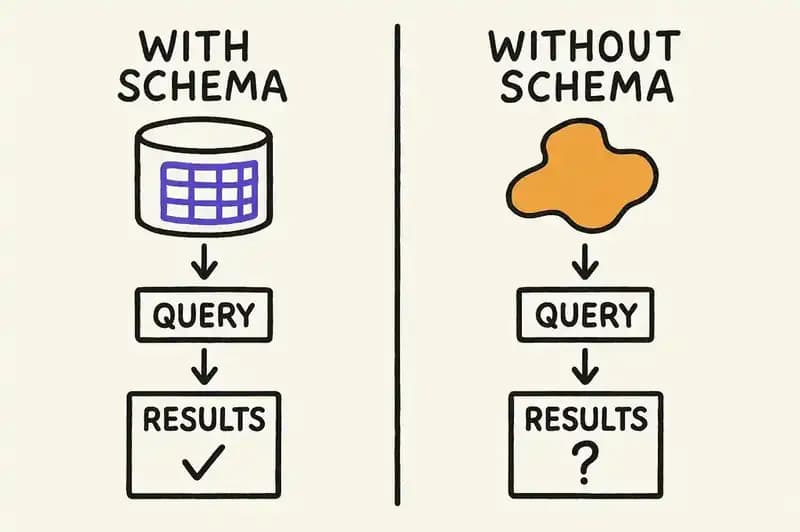 Now imagine querying a database with no schema. You send a request. You get data back. The data might be correct. It might be garbage. You have no way to tell, because there's no structural definition to validate against. Every query is an isolated act of faith.