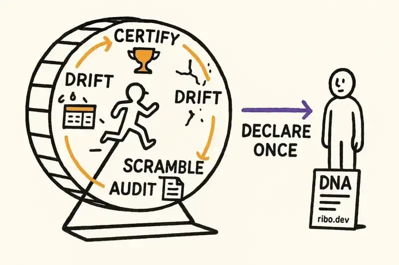 But if you stop at detection and blocking, you are paying for the ability to know you are broken without the ability to fix yourself. You are paying for a dashboard that shows drift without a system that corrects it. You are paying $80,000 per audit cycle and 300 engineering hours because the architecture of compliance has not caught up to the architecture of the systems it governs.