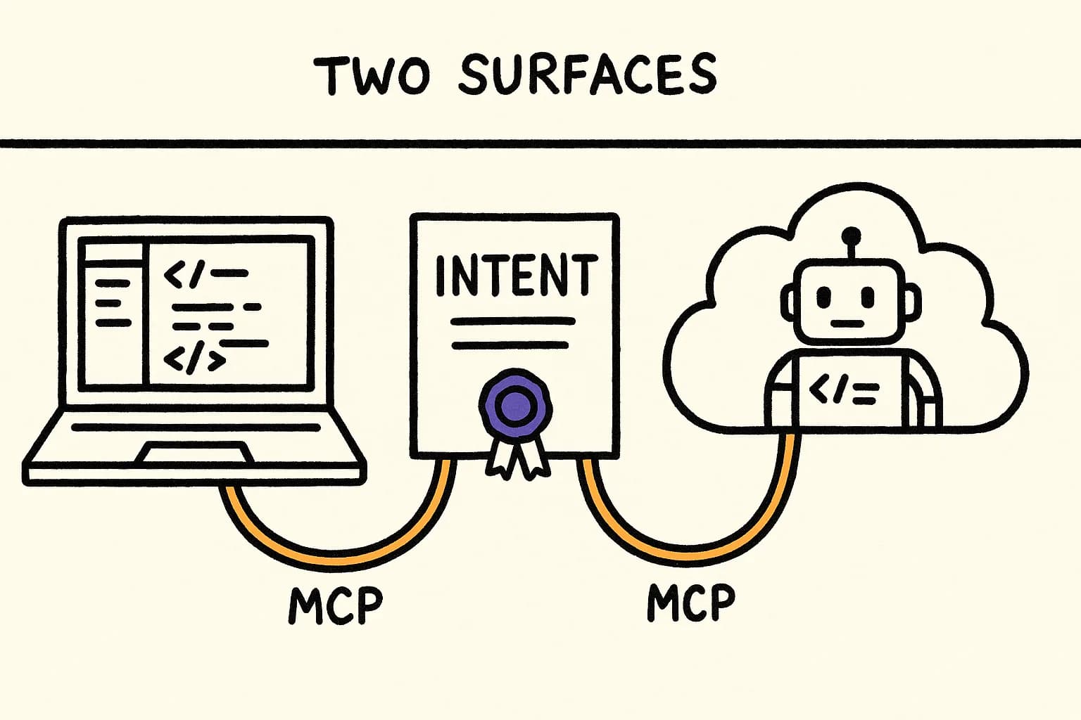 Copilot already ships fast code. The question is whether the code is yours. Every PR the coding agent opens that requires harmonization work is a PR where the agent's fast output consumed your slow review. Every IDE suggestion you decline is a micro-interrupt. Ribo is the piece that turns "fast general code" into "fast code that fits." Wired into both surfaces, the same declared source of truth informs authoring on the laptop and authoring in the cloud, and the gap between the two closes.